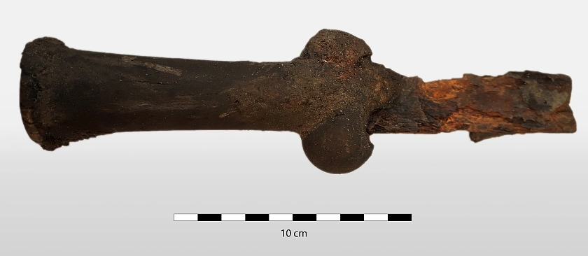 Während der Hochwasserschutzarbeiten an den Tiefer-Arkaden im Jahr 2021 fand man, bei einer archäologischen Ausgrabung unter Aufsicht des Archäologen Dieter Bischop, zusammen mit einigen anderen Fundstücken, ein Fragment eines Nierendolchs (Abb. 1, 2), das auf das 14. Jahrhundert datiert werden kann. Diesem fehlt leider ein Teil seiner zweischneidigen, aus geschmiedetem Eisen bestehenden Klinge. Dennoch ist der Rest des Dolchs, also der hölzerne Griff des Dolchs, samt der leicht abfallenden eingravierten Kappe aus Metallblech am Ende des Dolchs und die Parierstange aus Metall, erhalten geblieben. Das Fragment ist noch 24cm lang, war aber wahrscheinlich in seiner ursprünglichen Form (Abb. 4) 30 bis 40cm lang.