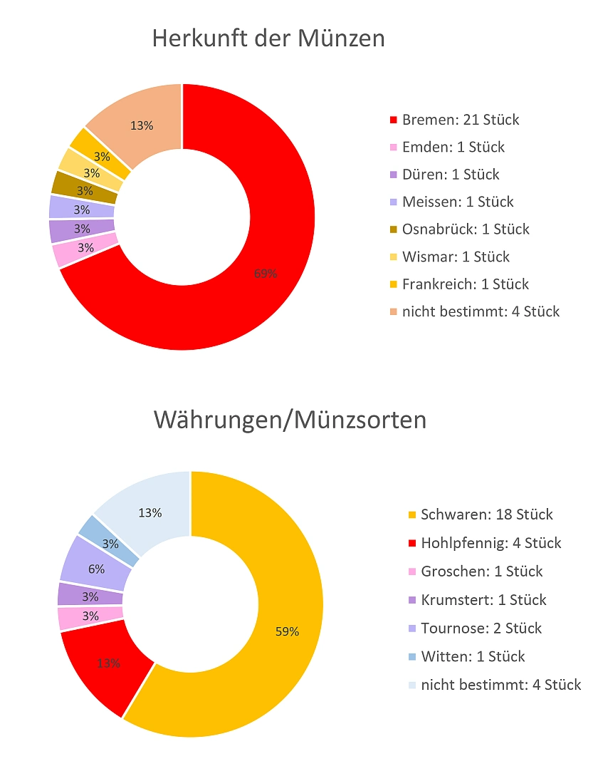 Der größte Anteil der Münzen stammt mit 68% aus Bremen. Diese lassen sich in zwei zeitliche Abschnitte einordnen: