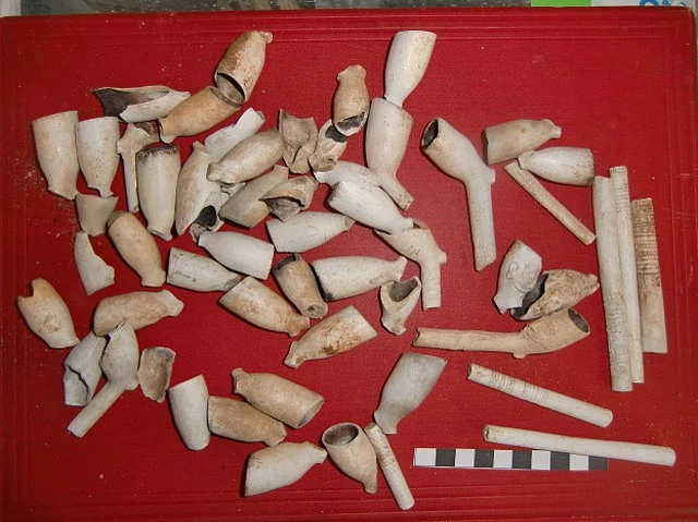 Das Problem an den teilweise sehr langen Pfeifenstielen war jedoch, dass sie schnell zerbrachen. Aus diesem Grund können wir heute so viele Fragmente in Gräben und anderswo als „alten Müll“ finden.