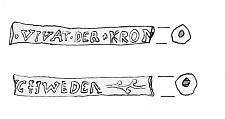 Außerdem wird einem die Menge an Pfeifenrauchenden bewusst, wenn man archäologische Befunde aus dem 17./18. Jh. betrachtet. U.a. bei der Ausgrabung an den Bremer Weserarkaden kam eine Vielzahl zerbrochener Pfeifenstiele und Pfeifenköpfe zu tage (Abb. 5). Sie sind verziert mit den unterschiedlichsten Mustern. In späterer Zeit wurden auch Könige oder Kaiser auf den Pfeifenköpfen abgebildet. In der Zeit, als Bremen unter schwedischer Herrschaft war (1648-1719), wurden wahrscheinlich Tonpfeifen zu Propagandazwecken verschenkt. Auf den Stielen stand VIVAT DER KRONE SCHWEDEN (Hoch lebe die Krone Schwedens) (Abb. 6).