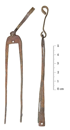 Unter den Funden dieser Grabung befand sich auch die auf dem Foto abgebildete Doppelschnalle. Diese war vermutlich eine Schnalle für einen Schuh oder einen Gürtel.