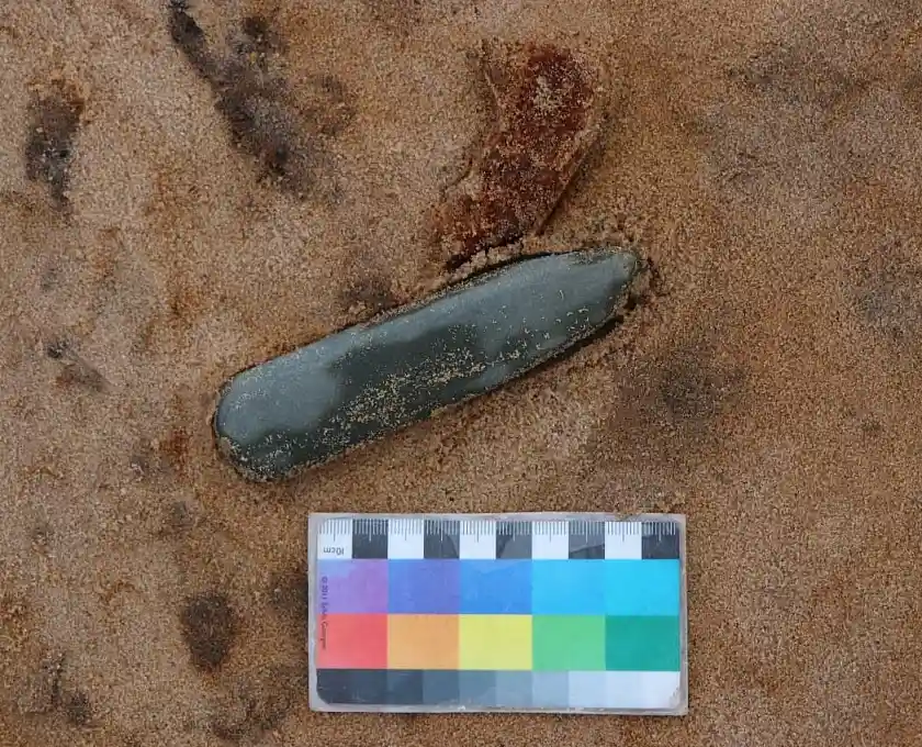 Exkurs: Bei einem der spannendsten ausgegrabenen Schleifsteine Europas handelt es sich übrigens um den Schleifstein von Strøm. Auf ihm befindet sich eine Innschrift, die nicht nur auf die Funktion hindeutet sondern auch, dass man den Stein am besten in einem mit Wasser gefüllten Horn lagert (https://de.wikipedia.org/wiki/Wetzstein_von_Str%C3%B8m). Der Stein datiert in das 6. Jahrhundert nach Christus.
