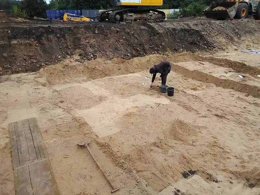 Das Gelände zwischen der Straße An der Reitbrake und der Hafeneisenbahn in Oslebshausen scheint wie ein ödes Gewerbegebiet. Doch der Schein trügt. Dort waren in der NS-Zeit mehrere große Zwangsarbeitslager u. a. für sowjetische Kriegsgefangene. Etliche von ihnen starben an Hunger und Krankheiten oder wurden bei Fluchtversuchen ermordet. Der zu den Lagern gehörende Friedhof wird seit August 2021 archäologisch untersucht. Die ersten Ergebnisse dieser Ausgrabung werden den Besuchern und Besucherinnen in Form von Führungen zur Grabung und mit einer kleinen Poster-Ausstellung präsentiert.